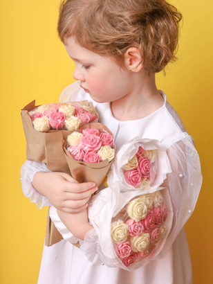 Собираем сладкие букеты разного размера, от мини комплиментов, до роскошных микс букетов. Собираем из пряников с росписью и цветов из шоколадной глазури в виде роз или пионов