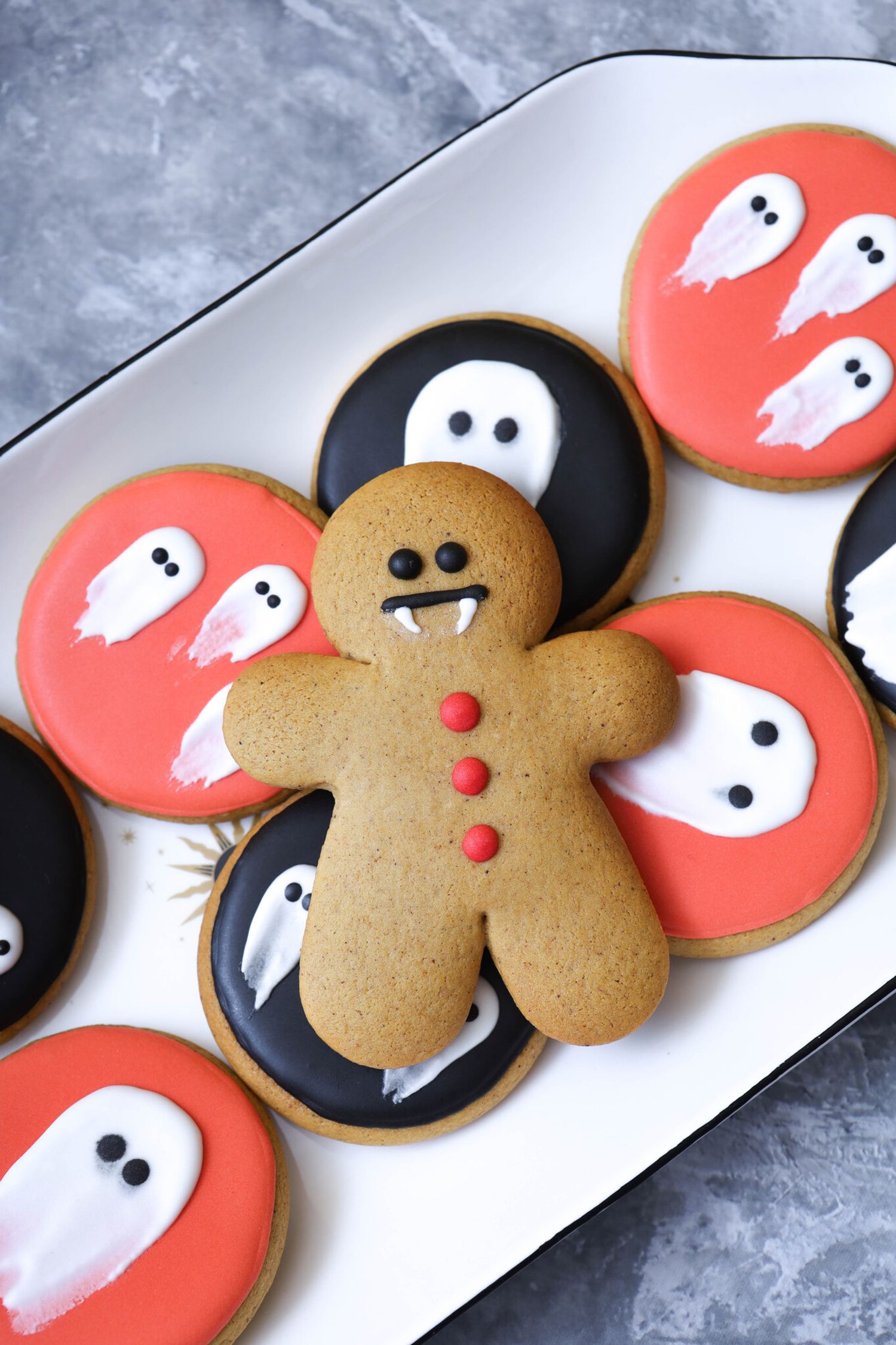 Подготовили несколько вариантов пряников в тему праздника. Круги с приведениями, черепа красными глазами, Пряня с клыками, мы прозвали его Прякула - подходит имя?