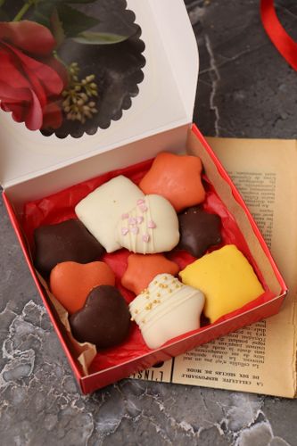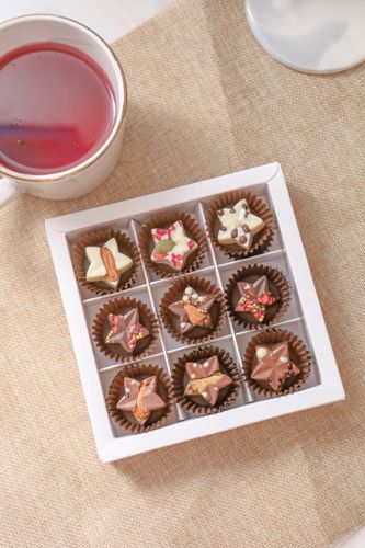 От простого ярлыка или шубера, до полной печати брендированной коробки и печати логотипа на шоколаде.